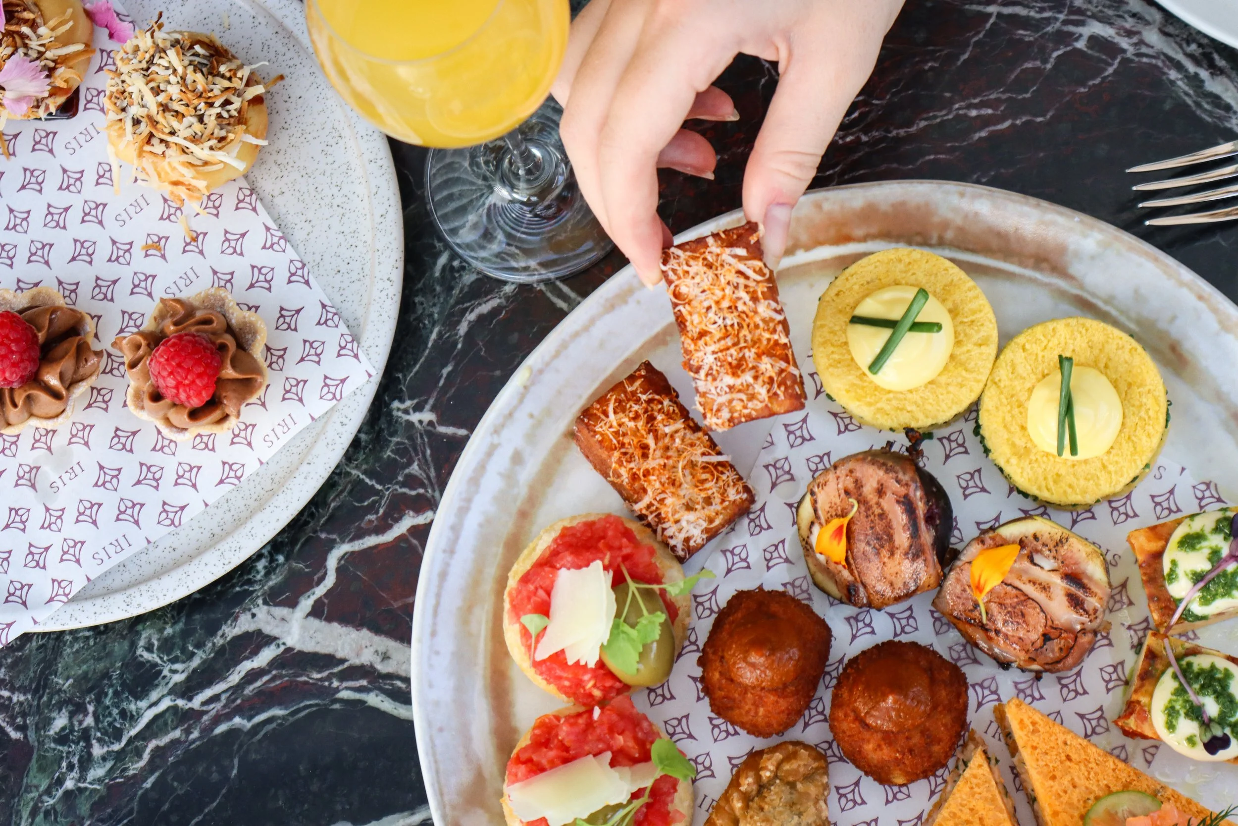 Enjoy a 1.5-hour bottomless brunch with Spanish-inspired bites and flowing beverages or Indulge in a signature Iris feast, showcasing tapas classics and Spanish-inspired delights.